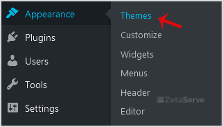 2. Under the dashboard menu, hover your mouse on "Appearance" and then click on "Themes".