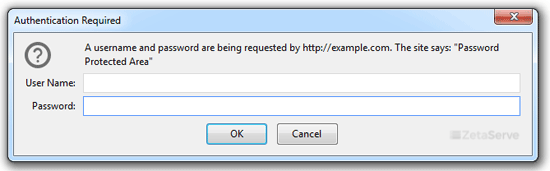Now, should you try to open your password protected directory in your browser through the url www.example.com/myfolder, which is already password protected, your browser will prompt you to enter username and password.![]()