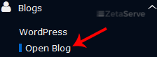 4. On the left side of your screen you should locate the "Blogs" category. Click on it and then click on the "OpenBlog" link that will appear.