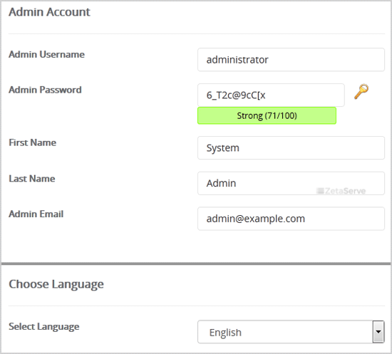 - Admin Username: Your new Dotclear username (for security reason do not use the "Administrator" or the "Admin" username.)