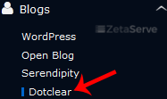 4. On the left side of your screen you should locate the "Blogs" category. Click on it and then click on the "Dotclear" link that will appear.