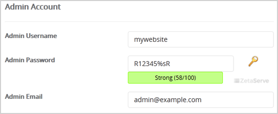 - Admin Username: Your new b2evolution username (for security reason do not use the "Administrator" or the "Admin" username.)