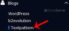 4. On the left side of your screen you should locate the "Blogs" category. Click on it and then click on the "Textpattern" link that will appear.