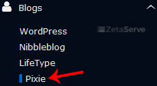 4. On the left side of your screen you should locate the "Blogs" category. Click on it and then click on the "Pixie" link that will appear.
