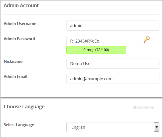 - Nickname: Nickname for the admin user account.
