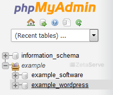 3. In left side-bar, Click on the expand button to expand database like "example".